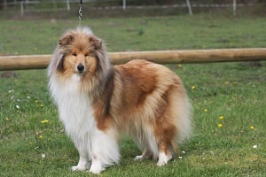 joli sujet exc type et format. les oreilles pourraient esttre plus rapprochées . exc encolure, ligne de dos . exc fouet . belle poitrine . démarche correct .